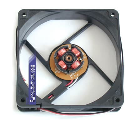 Также весьма любопытна у SFF21E и SFF21F электрическая обвязка мотора: помимо аккуратного индуктора, вентиляторы обнажают нетрадиционную управляющую схему, которая базируется на чипе Sanyo LA6583. Интересен этот чип тем, что нагрузка (индуктор) ставится на нем в «мостовом» включении, между выходами драйверов (то есть, индуктор является «однообмоточным»), и «коммутация» обмоток (фактически — переключение одной обмотки между драйверами) априори получается «сглаженной». Казалось бы, вот он — «магический» рецепт, который должен уничтожить «треск мотора» как класс. Но на практике не все так просто — «электрические» шумы в голосе SFF21E и SFF21F прослушиваются, и громкость их сопоставима с обычными, «конденсаторно-заглушенными» вентиляторами.