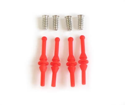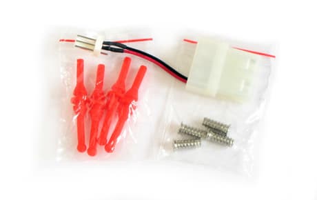 После раскупоривания коробок обнаруживаем неплохой набор аксессуаров — это традиционные крепежные саморезы (4 штуки), переходник электропитания (для подключения к стандартному 4-пиновый Molex-коннектору линий БП) и дополнительный «квартет» силиконовых штифтов (которые предназначены для умягченной и вибродемпфирующей фиксации наших подопытных в корпусе).