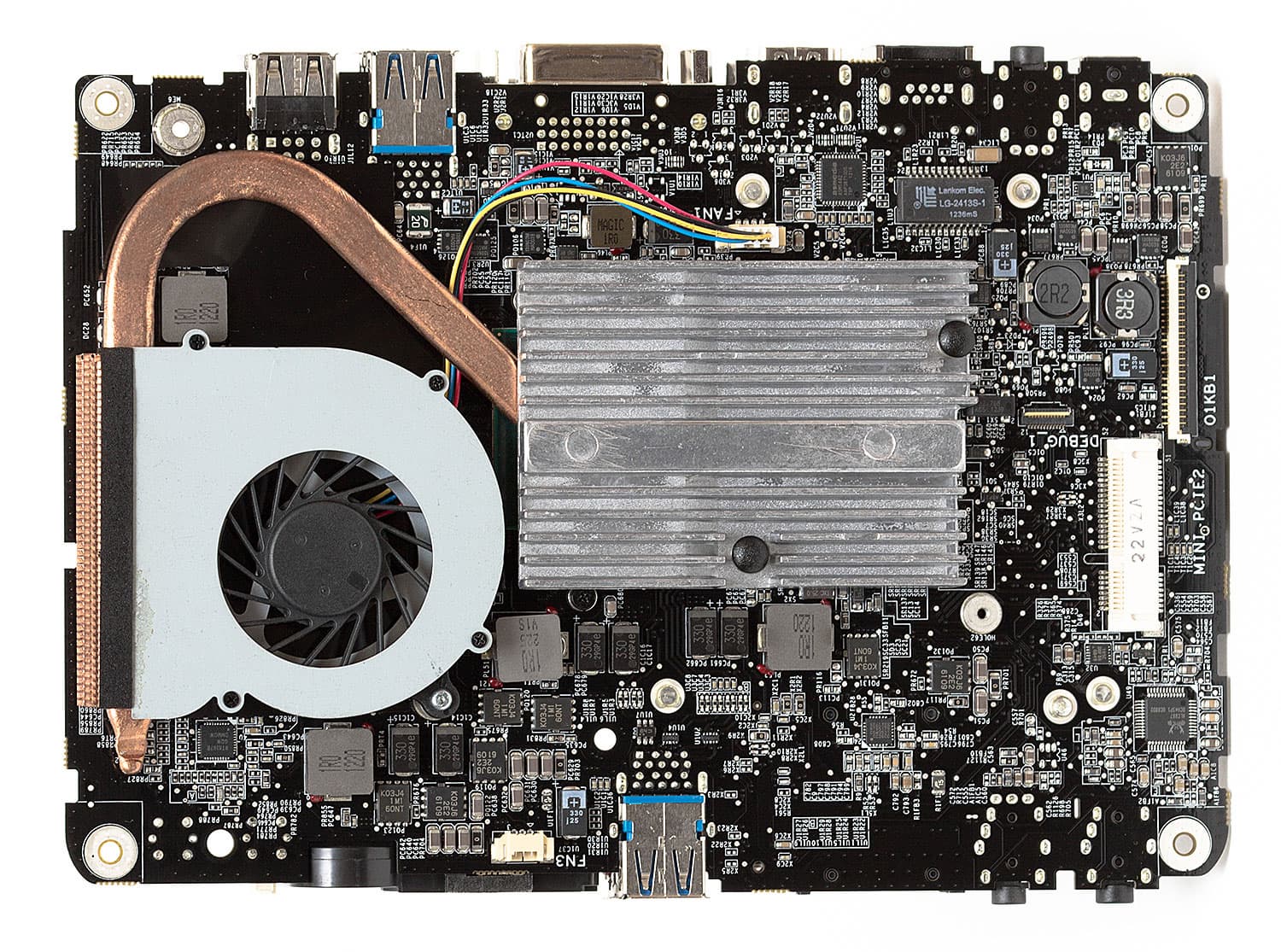 Забираться «под плату» большинству пользователей не потребуется, но мы это сделали в порядке повышения общей образованности. Слот здесь всего один — mini-PCIe половинной длины, и он по умолчанию занят адаптером Wi-Fi.