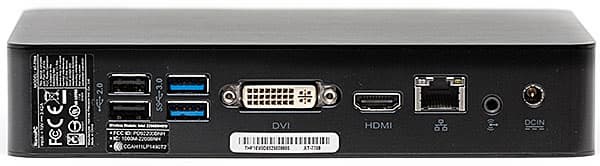 Задняя панель еще более богата разъемами. В частности, на ней находятся еще четыре порта USB, причем в линейке АТ-7000 половина из них также поддерживает USB 3.0, что (в сумме с передними) полностью утилизирует возможности чипсета. Видеовыходы представлены двумя разъемами — DVI-I (так что через входящий в комплект переходник можно подключить и старый монитор с аналоговым входом) и HDMI. Единственный недостаток — single-link, т. е. разрешение устройств отображения ограничено 1920×1200, но мы не склонны сильно к нему придираться: все же приличные мониторы с более высоким разрешением до сих пор остаются дороговатым, а потому и маловостребованным удовольствием. Главное, что пару устройств (например, монитор и телевизор) «по цифре» подключить можно, да и старая техника за бортом не осталась, т. е. на наш взгляд такая конфигурация выходов для мини-ПК является оптимальной.