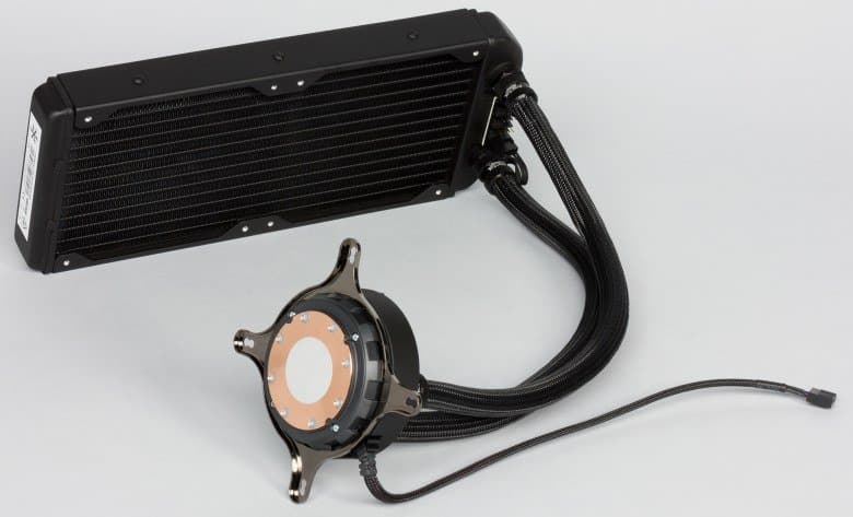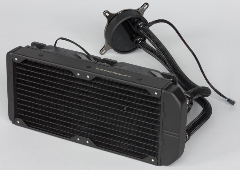 | Подключение | Помпа: штыревой разъем на 4-контактный разъем (общий, питание, датчик вращения, управление ШИМ) на мат. плату. Вентиляторы: 4-контактный разъем (общий, питание, датчик вращения, управление ШИМ) в разъемы на радиаторе. |