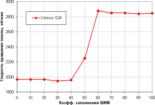 Приведем также зависимость скорости вращения помпы от коэффициента заполнения ШИМ: