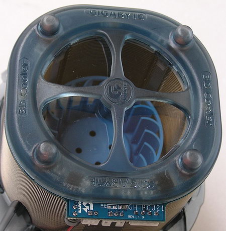 Вентилятор кулера Gigabyte 3D Rocket-Pro Cooler GH-PCU22-VG, вид снизу кулера.