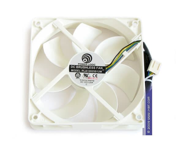 Конструктивные особенности (вентилятор). Кулер оснащен фирменным вентилятором (модель Power Logic PLA12025S12M, номинальная скорость вращения крыльчатки 1700 об/мин).