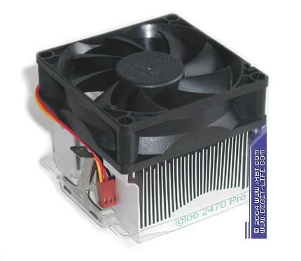 Теперь у нас на очереди продолжатели генеральной линии, очерченной Igloo 2461 — крупнотелые бюджетники серии Igloo 2470. Эти кулеры базируются на однотипном радиаторе, полностью идентичным модели Igloo 2461, укомплектованы таким же привлекательным шестиконтактным крепежом, но несут на борту полногабаритный вентилятор типоразмера 80х80х25 мм. Ранжирование моделей внутри серии традиционно производится по скорости вращения крыльчатки (1700, 2200 и 2800 об/мин у Igloo 2470 Light, 2470 и 2470 Pro соответственно).