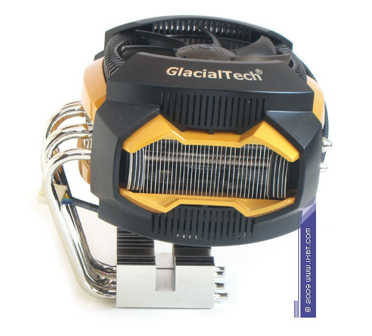 Что ни говори, такого имиджевого оформления мы еще не встречали! Тут вам и модный футуристический жанр, и опрятный декоративный кожух с «интегрированными» рамками набортных вентиляторов, и изысканная цветовая гамма, и зеркальная финишная обработка боковин радиатора. Все сработано на очень хорошем, истинно хай-эндовом уровне. И по этому пункту спецы GlacialTech безоговорочно заслуживают, как нынче принято выражаться, уважуху и респект! :)