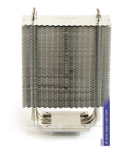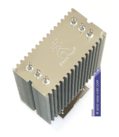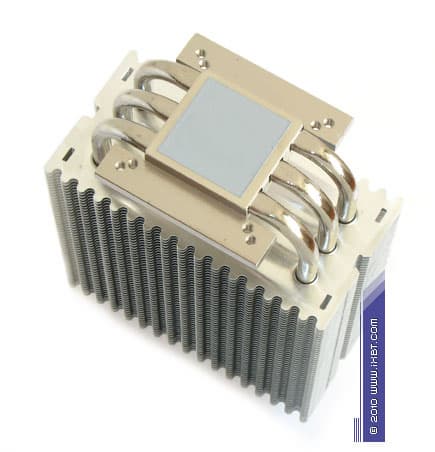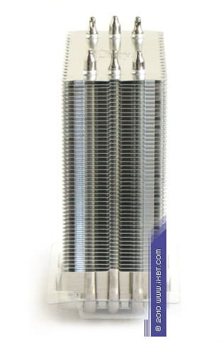 Конструктивные особенности (радиатор). «Рабочее тело» кулеров образовано композицией медно-алюминиевого теплосъемника 55х55х9 мм, трех тепловых трубок диаметра 6 мм и секции алюминиевого оребрения (49 пластин, общая площадь поверхности теплообмена порядка 4500 см2).