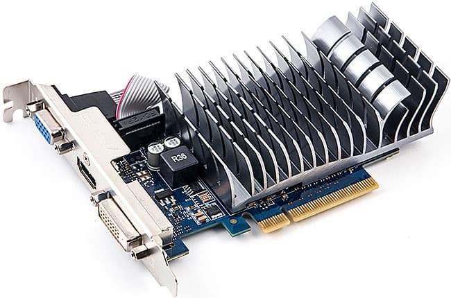 Еще один гость из другого мира — видеокарта на базе GeForce GT 630. Нечто с таким названием мы уже тестировали год назад, но именно, что с названием: старые продукты основывались на GF108, а новые используют чип GK208. Сама NVIDIA утверждает, что это новая разработка, на деле же GPU очень похож на обрезанный GK107 (ранее использовался в GT 640 и выше). Причем обрезанный программным образом — оба имеют одинаковую площадь и частично совпадающую разводку. Почему частично? Потому, что у GK208 отсутствует один канал памяти, да и шинный интерфейс это лишь PCIe x8, а не х16. Таким образом, очевидно, что при сравнимых частотах GT 630 не конкурент старым GT 640, несмотря на одинаковое количество графических процессоров. А вот сравнительно со старым же GT 630 DDR3 все должно быть не так уж и плохо: «узкая» шина памяти частично компенсируется ее более высокой тактовой частотой (1800 МГц против официальных 1600 МГц, которые в реальных продуктах часто усыхали и до 1400 МГц), а арифметические возможности чипа много выше — на уровне GT 640. Другой вопрос, нужен ли в современном компьютере такой уровень или лучше обойтись интегрированным видео? :) Зато, что немаловажно, карты на GK208 получаются компактными и сплошь снабжены пассивным охлаждением (ибо греется GPU слабо), а по цене они могут поспорить и с GT 610 / 620, отличающимися совсем уж никакой производительностью. В общем, определенная ниша у этих решений есть — хотя бы апгрейд старых компактных систем. Ну а точный уровень производительности мы определим при помощи карты от ASUS с 2 ГБ DDR3 (модификацию с 1 ГБ мы тестировать не стали ибо не за чем — разный объем в видеокартах такого уровня никак не скажется), работающей совместно с Core i3-4330 (чтоб уж точно процессор не мешал).