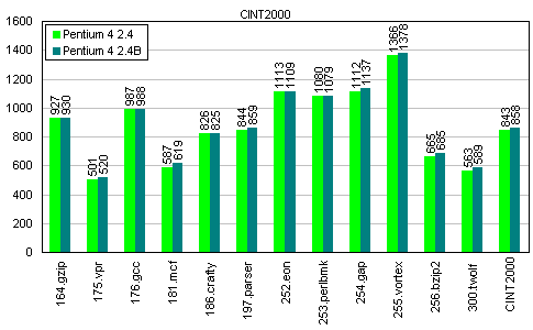 Комментировать здесь особо нечего. Тесты SPEC CPU2000 сильно зависят от скорости обмена с оперативной памятью, а здесь она у нас не изменилась. Так что влияние частоты FSB при прочих равных условиях минимально.