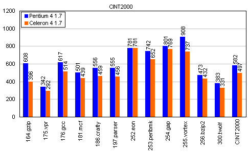 Можно долго спорить о том, подходит ли процессор Celeron на ядре Willamette-128 для интенсивных вычислений. Однако большинство читателей согласится, что в вопросе использования "не предусмотренных производителем" решений мы "впереди планеты всей" :). Можно рассматривать это сравнение и как проверку реакции SPEC CPU2000 на уменьшение кэша второго уровня до 128KB.