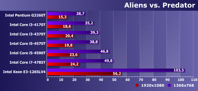Игра сильно зависит от процессора, но все взятые нами Haswell «уперлись» в собственные видеоядра. Пусть и на приличном уровне — можно и немного качество картинки подкрутить. Ну а на E3-1265LV4 (или замедленном до такого состояния одном из настольных Broadwell-C) того «запаса» стало в полтора раза больше :)