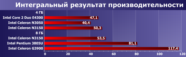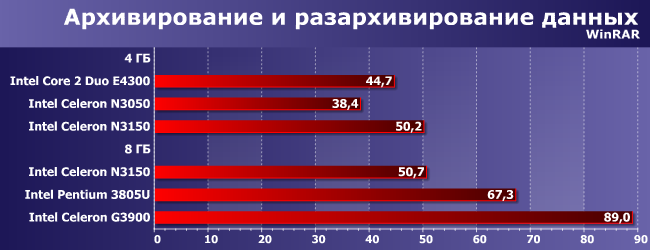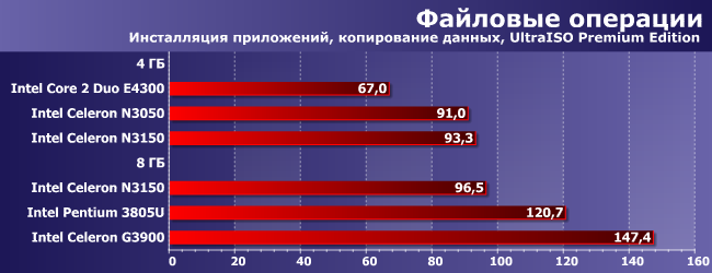 | Процессор | Intel Core 2 Duo E4300 | Intel Celeron N3050 | Intel Celeron N3150 | Intel Pentium 3805U | Intel Celeron G3900 |