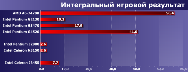Если же говорить о междуфирменной конкуренции, то в данном случае все обстоит еще забавнее: на данный момент пути-дорожки AMD и Intel разошлись уже настолько далеко, что сравнивать непосредственно имеет смысл лишь считанные модели. Конечно, никто пока не отменял Socket AM1 и/или BGA-модификации тех же Kabini/Beema, но они занимают промежуточное положение между линейками Celeron J и Celeron G, нуждаясь (как правило), подобно последним, в активном охлаждении, но имея производительность и функциональность на уровне первых (Athlon 5350 в свое время выступал как раз на уровне Pentium J2900, а его замена на Athlon 5370 — это еще +5% тактовой частоты, и всё). Их GPU при этом получше выглядит в игровых приложениях, но и его мало для серьезного геймера, а уж про декодирование видео лучше вовсе не вспоминать. В общем, с ними сравнивать неинтересно. А вот с недавно протестированным младшим одномодульным (и весьма недорогим) А6-7470К — напротив: очевидно, что у этого процессора не лучшим образом обстоят дела с энергоэффективностью, зато на нем действительно можно играть в какие-то игры. А как при этом обстоят дела с общесистемной производительностью — мы и посмотрим.