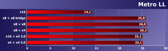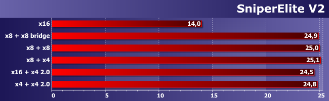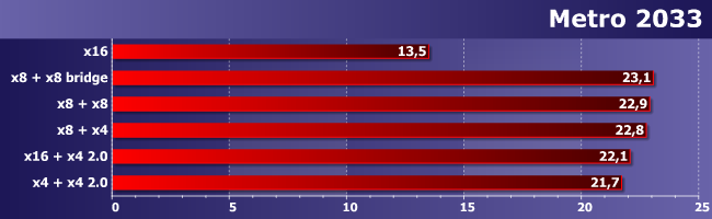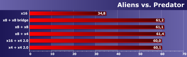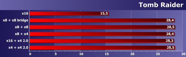 Единственное, что можно утверждать — использование асимметричного (т. е. «процессорный» + «чипсетный» слоты) CrossFire снижает производительность, но всего-то на 2%. А вот зависимость от скорости слотов не прослеживается, так что если в руки попало две одинаковых карты — их можно использовать, даже если плата не рассчитана под multi-GPU. Все равно работать будет нормально, обеспечивая почти двукратный прирост средней частоты кадров.