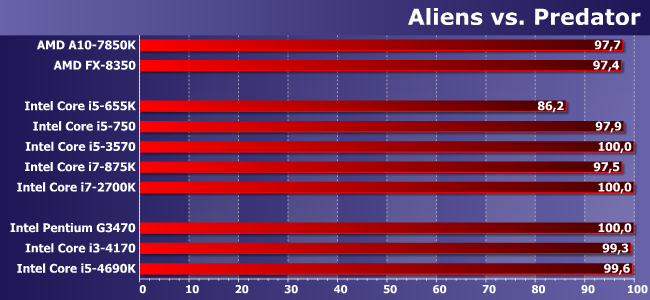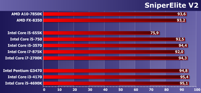 В двух играх все выжимают около максимума из видеокарты, в одном же опять «совсем плохо» Core i5-655K. Но, кстати, с современными Pentium такой проблемы нет, так что причина не в двухъядерности, а в низкой производительности процессора вообще.