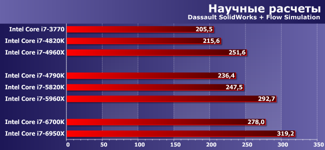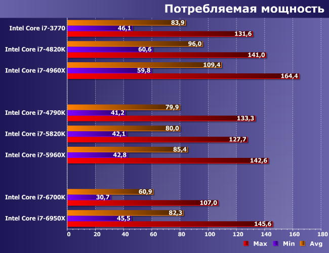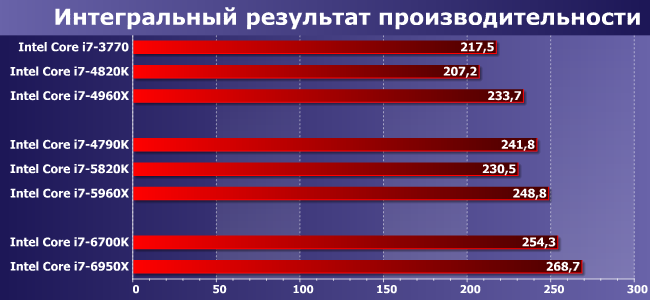 | Процессор | Intel Core i7-4820K | Intel Core i7-4960X | Intel Core i7-5820K | Intel Core i7-5960X | Intel Core i7-6950X |