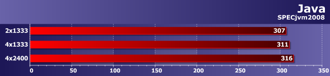 SPECjvm всегда относился к числу тестов, чувствительных к количеству каналов памяти — настолько, что недавно оказался единственным, где медленная память в двухканальном режиме оказалась равна быстрой в одноканальном. Ничего удивительного, что и в сегодняшнем тестировании картина схожая. И омрачает радость лишь то, что в очередной раз прирост производительности оказался столь небольшим. Работает себе Core i7-3970X в таких условиях в три раза быстрее, чем эталонный (по совместительству — еще и старый бюджетный) Athlon II X4 620, и работает — никаким конфигурированием «периферийной» составляющей его не замедлить и не ускорить настолько, чтоб это было заметно без длительных специальных тестирований.