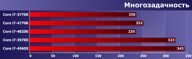 | Процессор | Core i7-3770K | Core i7-4770K | Core i7-3970X | Core i7-4820K | Core i7-4960X |