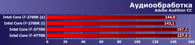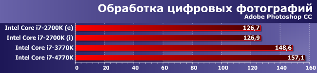 В Photoshop сам по себе прирост производительности выше, однако опять убеждаемся в том, что важным был выход Ivy Bridge. А Haswell на его фоне теряется.