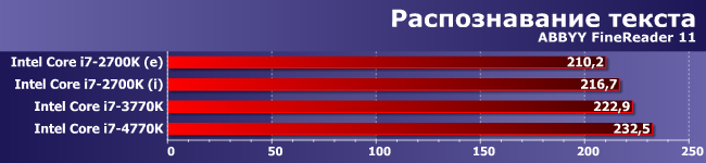 Вот в распознавании текста 4770К от 3770К оторвался заметнее, нежели преимущество последнего над 2700К. Но все равно как-то маловато :)
