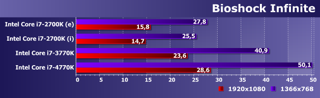В Bioshok на Haswell уже можно попробовать играть и в FHD. Предыдущие поколения слабее, но HDG 4000 достаточно по крайней мере на низкое разрешение.
