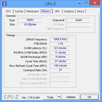Заметим, что максимальная частота процессора (в режиме Turbo Boost) определяется утилитой CPU-Z 1.70 как 3,3 ГГц, а не 3,5 ГГц, как указано в документации. Дело тут в том, что максимальная частота ядер зависит от количества активных ядер: если загружено одно или два ядра процессора, то их частота может составлять 3,5 ГГц, а при загрузке большего числа ядер процессора их максимальная частота составляет 3,3 ГГц.