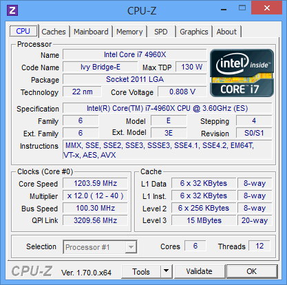 В качестве исторической справки напомним, что семейство Sandy Bridge-E первоначально составляли три модели: шестиядерные процессоры Core i7-3960X и Core i7-3930K, а также четырехъядерный Core i7-3820. Core i7-3960X и Core i7-3930K имели полностью разблокированный коэффициент умножения, а Core i7-3820 — частично разблокированный. Немного позднее появился и еще один представитель данного семейства — шестиядерный процессор Core i7-3970X, который отличался от Core i7-3960X лишь более высокой тактовой частотой (и более высоким энергопотреблением). Все процессоры семейства Sandy Bridge-E были основаны на микроархитектуре Sandy Bridge и не имели интегрированного графического ядра. Кроме того, все процессоры были оснащены четырехканальным контроллером памяти и поддерживали память DDR3-1600. Топовые процессоры семейства Sandy Bridge-E — модели Core i7-3970X и Core i7-3960X — относились к серии Extreme Edition. Эти процессоры имели разделяемый между всеми ядрами кэш L3 размером 15 МБ. Процессор Core i7-3930K был наделен кэшем L3 размером 12 МБ, а процессор Core i7-3820 — размером 10 МБ. Все процессоры семейства Sandy Bridge-E имели интегрированный контроллер PCI Express 3.0 на 40 линий, которые могли быть сгруппированы в два порта PCI Express 3.0 x16 и один порт PCI Express 3.0 x8, в один порт PCI Express 3.0 x16 и три порта PCI Express 3.0 x8 или в один порт PCI Express 3.0 x16, два порта PCI Express 3.0 x8 и два порта PCI Express 3.0 x4.