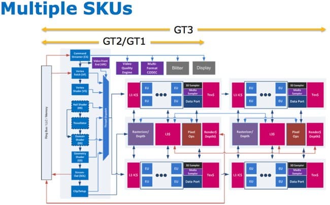 Топовое ядро GT3e более-менее широко применяется только в мобильных решениях. В десктопном сегменте оно представлено только в процессорах форм-фактора BGA, которые распаиваются напрямую на материнские платы. Такое решение больше подходит для встраиваемых систем и вряд ли получит массовое распространение на рынке. В основном настольный сегмент будет довольствоваться ядрами GT1 и GT2.