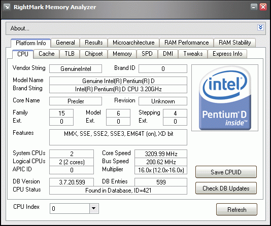 - CPU RightMark 2005 Lite (1.3) x64 edition