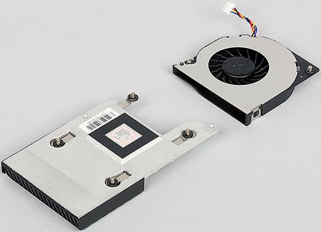 Для сравнения: вверху то, что используется во «взрослых» NUC, внизу — элемент конструкции «детского». Как видим, радиаторы абсолютно разные — и по размерам, и по материалу. Впрочем, вентилятор все равно воспринимается как избыточное решение. Особенно если говорить о младшей модели 5CPYH, которую мы и тестировали. В том числе, протестировали и работу системы охлаждения.