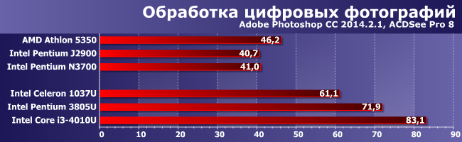 | Процессор | Intel Pentium J2900 | Intel Pentium N3700 | Intel Core i3-4010U | AMD Athlon 5350 |