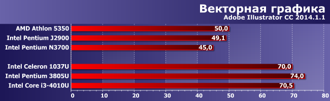 Обе программы способны «загрузить» четыре ядра (да и больше тоже), а вторая еще и активно задействует GPU, так что лидерами оказались Athlon 5350 и Pentium N3700 (Core i3-4010U, впрочем, еще быстрее, но совсем не на много, да и вообще он тут «вне конкурса»). Что ж — тем лучше для суррогатов. Но обратите внимание — J2900 даже большее количество ядер не позволило обогнать 1037U, т.е., собственно, вот для чего нужно было наращивать графику в Braswell. Иначе все может оказаться «плохо» и не только уже в игрушках.