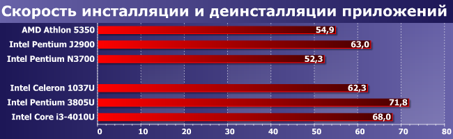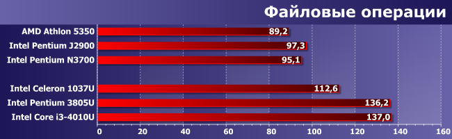 Лучшее, что могут суррогатные решения — догнать старый Ivy Bridge. Не самый медленный в линейке, конечно, так и способен на такие «подвиги» разве что самый быстрый представитель линейки Bay Trail-D. Понятно, что в бюджетном сегменте и сейчас популярны винчестеры, а в этом случае искать разницу между испытуемыми нет смысла, но сама по себе она есть. Даже в таких простых «бытовых» случаях.