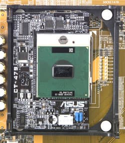 К счастью, некоторые производители выпустили продукты, позволяющие корректно сравнить производительность Pentium M с привычными нам CPU. Так, компании AOpen и DFI выпустили десктопные платы на базе мобильного чипсета Intel 855M (и одна из них, от DFI, принимает участие в нашем сегодняшнем тестировании), а компания ASUS и вовсе удивила мир… адаптером для установки мобильного процессора в десктопные платы для Socket 478! Правда, в последней бочке мёда не обошлось без ложки дёгтя. Так как поддержка процессора BIOS системной платы является обязательной даже просто для того, чтобы он корректно стартовал, с переходником от ASUS могут работать только платы этого же производителя, в BIOS которых специально для обеспечения совместимости была добавлена поддержка Pentium M. Вот список этих плат: