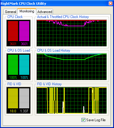 Результат весьма показательный — отключение C1E моментально сопровождается выставлением максимальных значений FID и VID в качестве текущих, после чего они остаются на постоянном уровне, независимо от загрузки процессора. А «эффективная частота» процессора стабилизируется на уровне, соответствующем его «истинной» (номинальной) частоте — 3600 МГц.