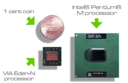 Заявленная мощность новинки при тактовой частоте 800 МГц составляет 6 Вт, и всего 7 Вт — для 1 ГГц версии. О широком внедрении чипов Eden-N данных до сих пор нет: процессор, габариты которого наполовину меньше Pentium M, предназначен, главным образом, для использования с платами форм-фактора Nano-ITX (12 x 12 см), сроки и массовость их поставок пока толком не озвучены.