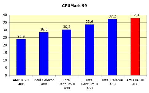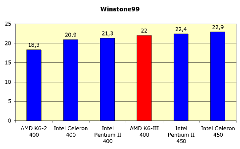 Здесь K6-III не так уж и плох, хоть и не дотягивает до Pentium II.