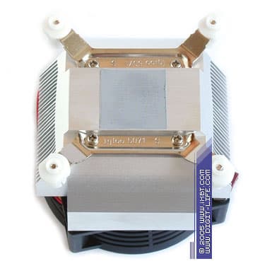 Другие технические примочки Igloo 5071 (которые неплохо зарекомендовали себя еще в серии Igloo 5070) остались практически без изменений: крепежная скоба с винтовыми креплениями была незначительно переработана, чтобы адаптироваться под новую конструкцию подошвы радиатора, вентиляторы полностью сохранили свою аутентичность — типоразмер и решетчатый патрубок, сужающийся в направлении потока, остался на прежнем месте и предустановленный термоинтерфейс добротного качества (наполнитель — композиция нитрида и оксида алюминия).