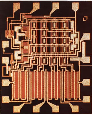 ![]() Fairchild 3708 — первая коммерческая ИС с поликремниевыми затворами, 1968 г. |