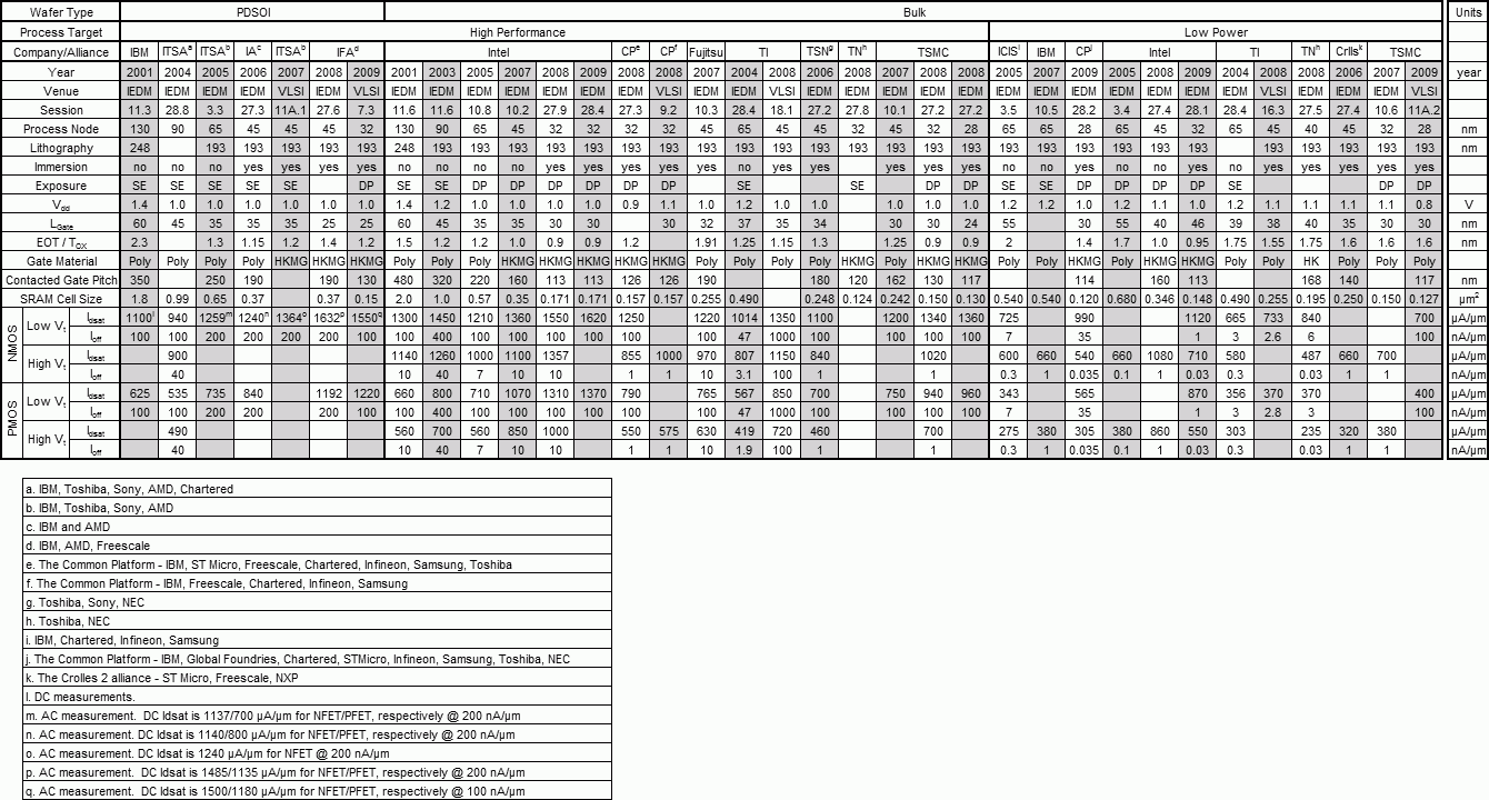 ![]() Данные с IEDM о техпроцессах к 2010 году. Источник — RealWorldTech. |