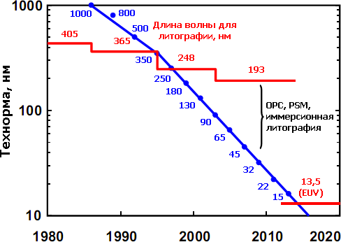 Никаких технологических революций по части литографических методов не предвидится — помимо того, что длина волны 193 нм требует иметь не только иммерсионные сканеры, но и как минимум двойное шаблонирование. Это само по себе является любопытным, ибо ещё 5 лет назад эксперты в один голос говорили, что для таких длин волн надо переходить на новые виды литографии, что скачкообразно увеличивает сложность и стоимость техпроцесса.