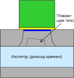![]() Уменьшить утечки можно технологией КНИ, в данном случае — частично обеднённой (Partially Depleted, PD SOI). Тут изолятор отсекает подложку, но остаточный слой под каналом («плавающее тело») всё ещё приводит к утечкам, хоть и не таким большим. Эта технология широко используется прежде всего из-за относительной дешевизны. ▼ |