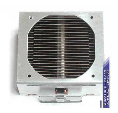 Первое, что обращает на себя внимание — это нестандартная, можно даже сказать, уникальная конструкция радиатора, выполненного по фирменной технологии Radial Fin. В нем сплелись воедино сразу три технических идеи: вместо традиционного «прямоугольного» оребрения здесь реализовано оребрение радиальное (внешний диаметр 60 мм, высота 25 мм), роль которого выполняет складчатая «гармошка» из тонкой алюминиевой ленты (толщиной всего около 0,1 мм), а в качестве основного теплосъемного элемента используется полый медный сердечник с внешним диаметром 28 мм.