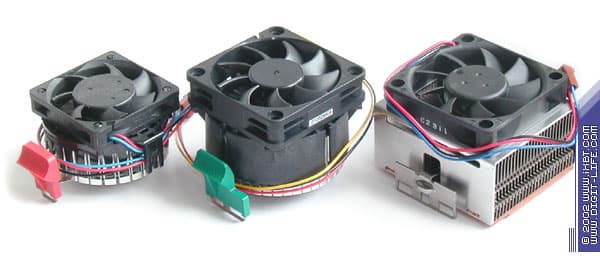Слева направо: кулеры Cooler Master HCC-002, Molex 37256-0005, Thermaltake Volcano 9