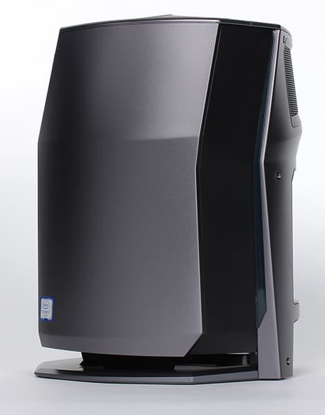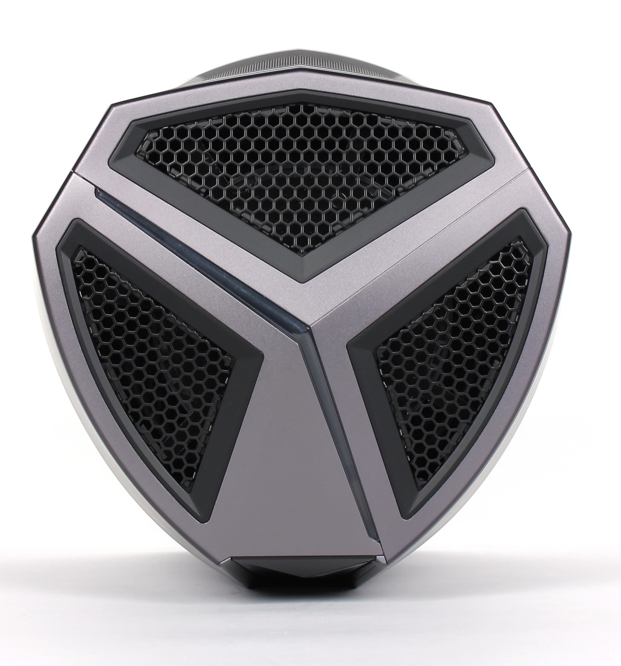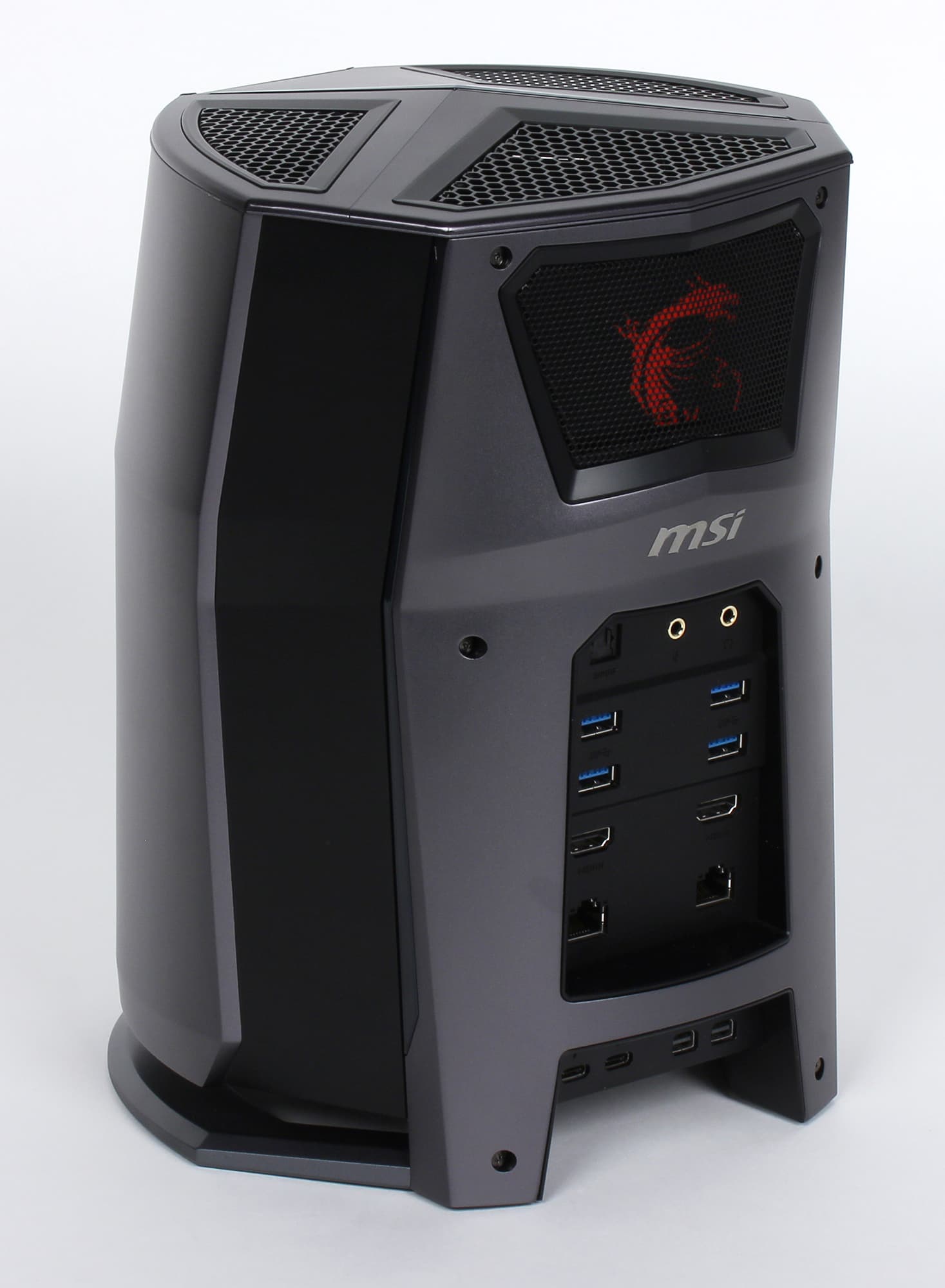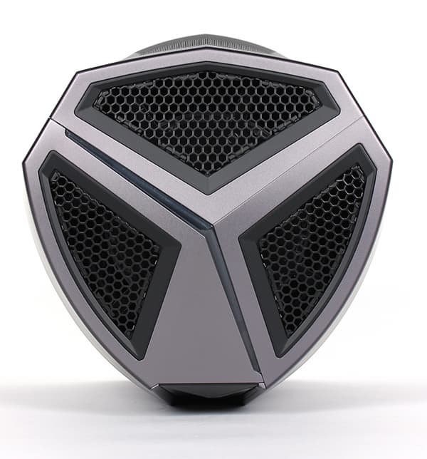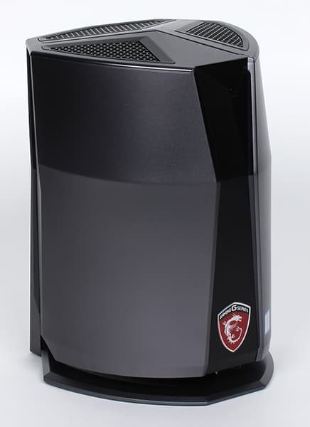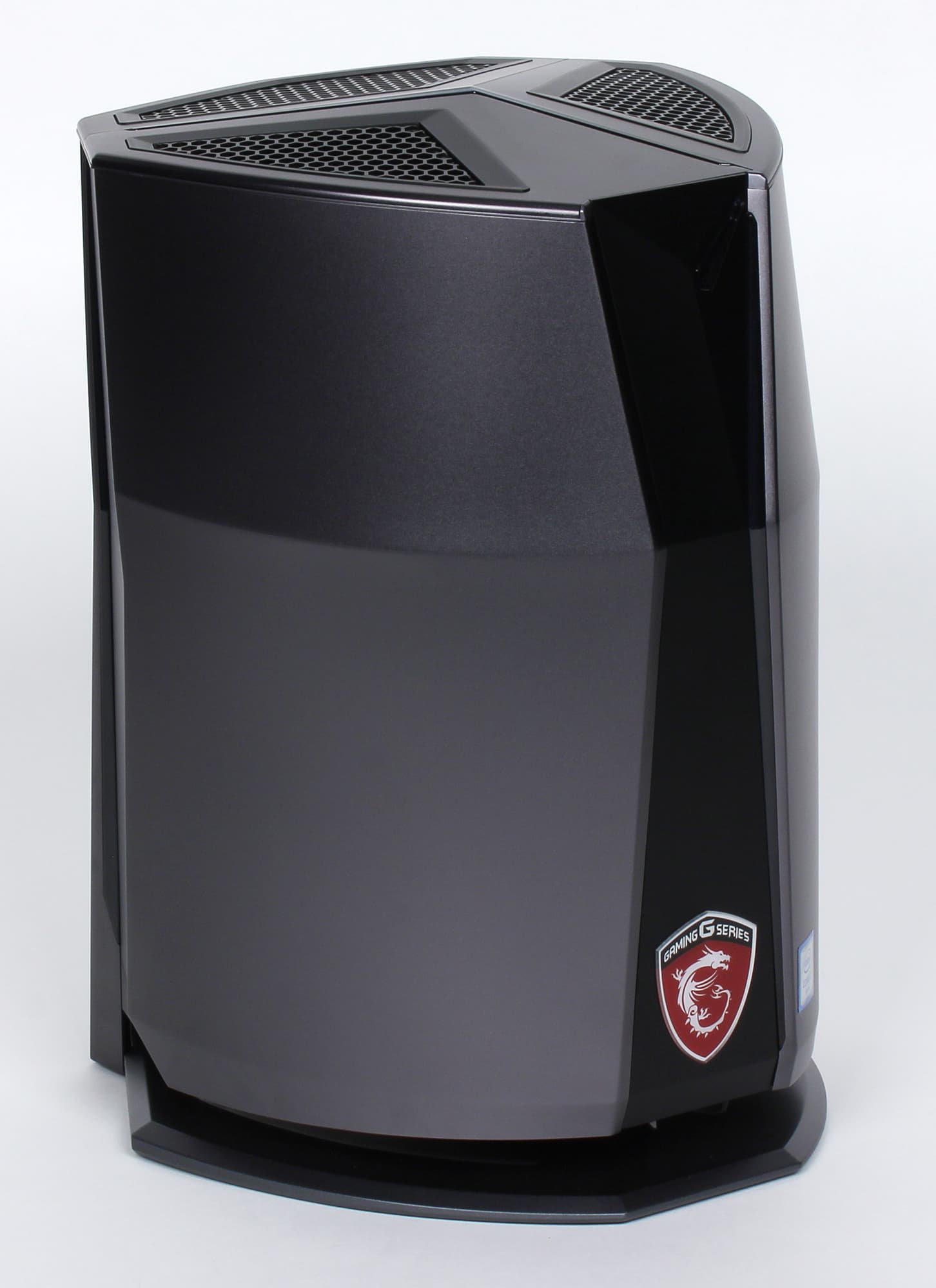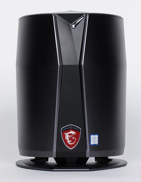 Итак, корпус компьютера MSI Vortex G65 выполнен в форме цилиндра и чем-то напоминает гламурное ведро. Цвет корпуса — серебристо-серый металлик.