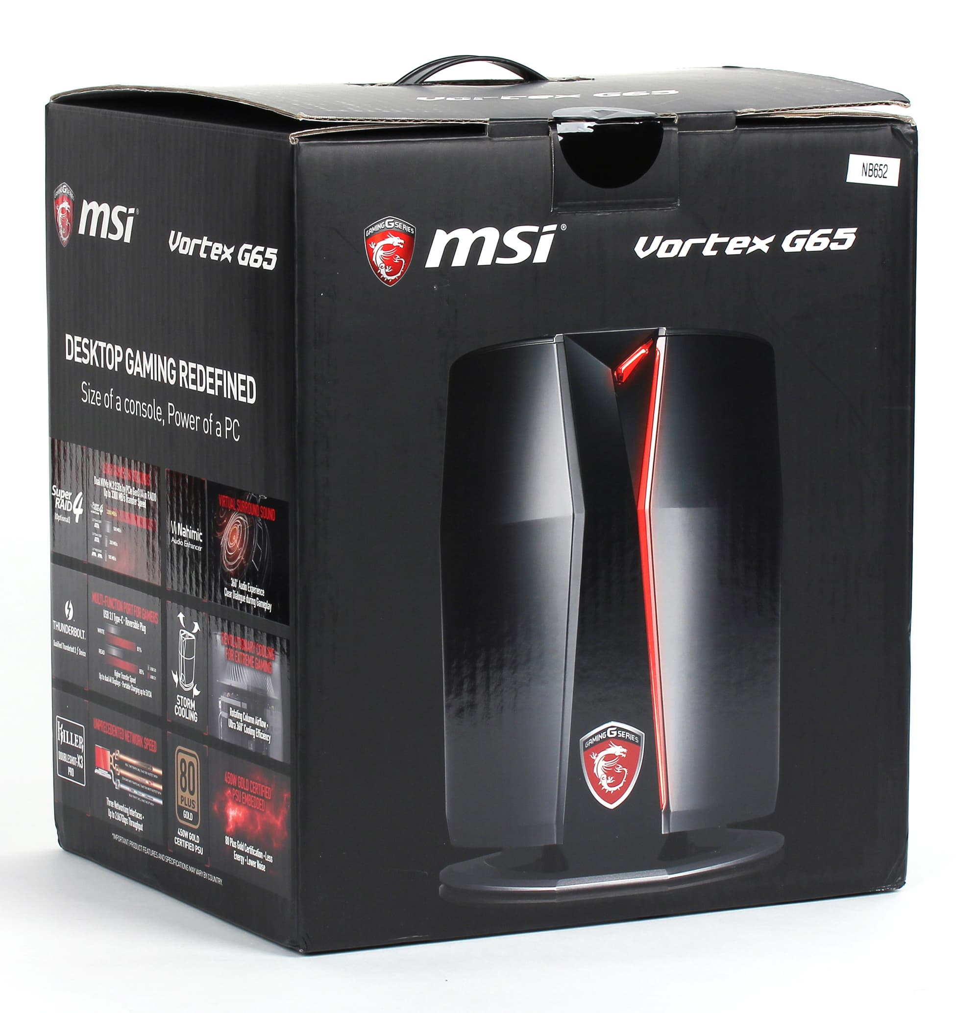 Системная плата этого компьютера основана на чипсете Intel Z170. Компьютер комплектуется четырехъядерным процессором Intel Core i7-6700K, который на сегодняшний день является одним из самых производительных процессоров для настольных ПК. Он имеет номинальную тактовую частоту 4,0 ГГц, которая в режиме Turbo Boost может повышаться до 4,2 ГГц. Размер его кэша L3 составляет 8 МБ, а TDP — 91 Вт. Конечно же, поддерживается технология Hyper-Threading. В процессор интегрировано графическое ядро Intel HD Graphics 530, но в варианте игрового компьютера MSI Vortex G65 оно не используется (что вполне логично для игрового решения).