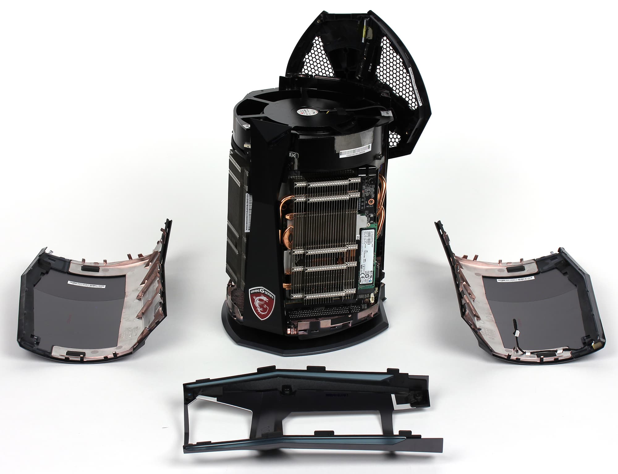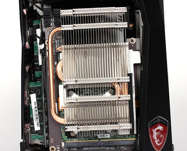 Внутри корпуса на всех тепловыделяющих элементах установлены массивные радиаторы с тепловыми трубками, ребра которых ориентированы вдоль образуемого воздушного потока. Кроме того, на процессоре установлен радиатор с отдельным вентилятором. Такую систему охлаждения в MSI окрестили Storm Cooling.