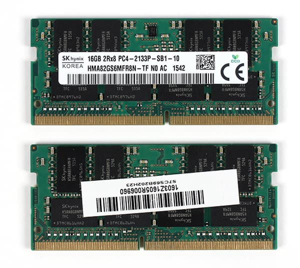 Для установки модулей памяти DDR4 в компьютере MSI Vortex G65 6QF SLI предусмотрено четыре слота. В нашем варианте было установлено четыре модуля памяти DDR4-2133 SK Hynix HMA82GS6MFR8N емкостью по 16 ГБ каждый. Таким образом, суммарный объем памяти составлял 64 ГБ. Отметим, что объем памяти может быть и меньше. В частности, в продажу будут поставляться модели с 32 ГБ памяти.