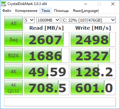 Утилита CrystalDiskMark выдает по максимальным скоростям последовательного чтения и записи примерно такой же результат.