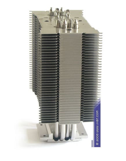 Хорош NH-U12P и в конфигурационной детализации: помимо усиленной накачки оребрения (секция в составе 36 пластин толщиной 0,3 мм, общая площадь поверхности теплообмена порядка 5500 см2), радиатор нашего подопытного приправлен двумя термическими бонификаторами — это увеличенный шаг размещения пластин (3 мм) и волнообразный профиль их «фронтальной» кромки.